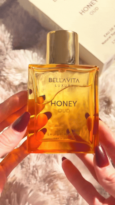 Bellavita Honey Oud – A warm, intoxicating blend of sweet honey, rich amber, velvety vanilla, and exotic oud. 100ml of long-lasting luxury (8-12 hours). Vegan & clean.