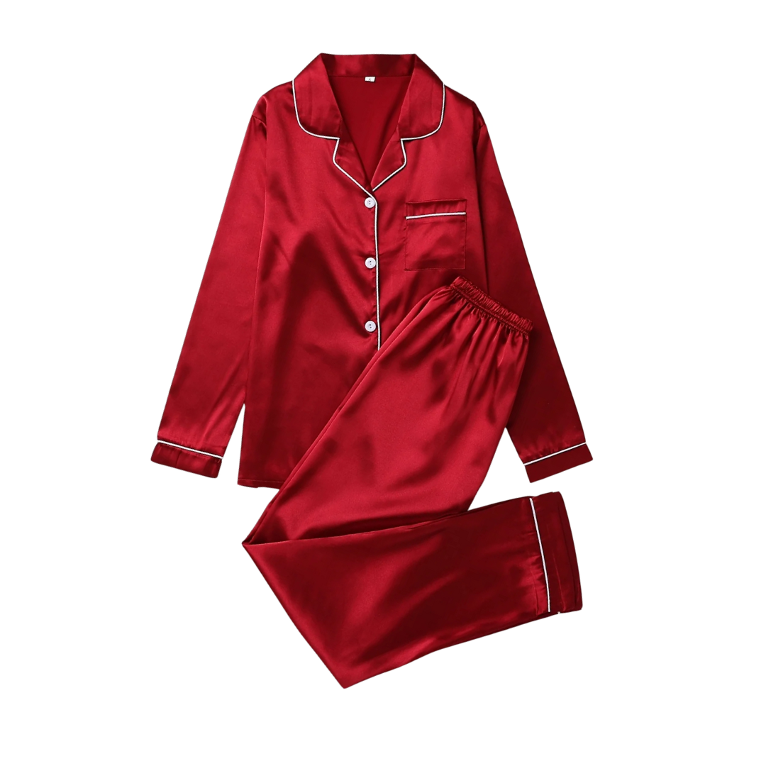 Indulge in comfort and elegance with this women’s two-piece pajama set, perfect for relaxing evenings and cozy autumn nights. Made from soft, breathable polyester with a touch of stretch, it features a classic button-up top and ankle-length pants for a refined lounge look. Ideal for sleeping, relaxing, or stylish homewear. Available in sizes S, M, L, XL, and XXL.